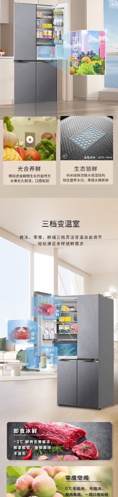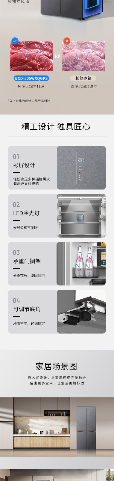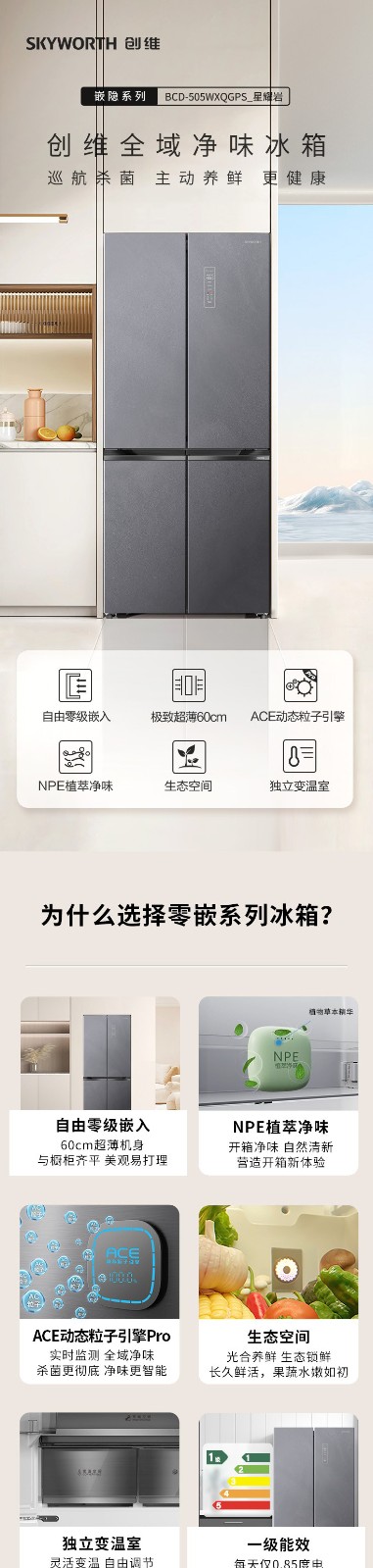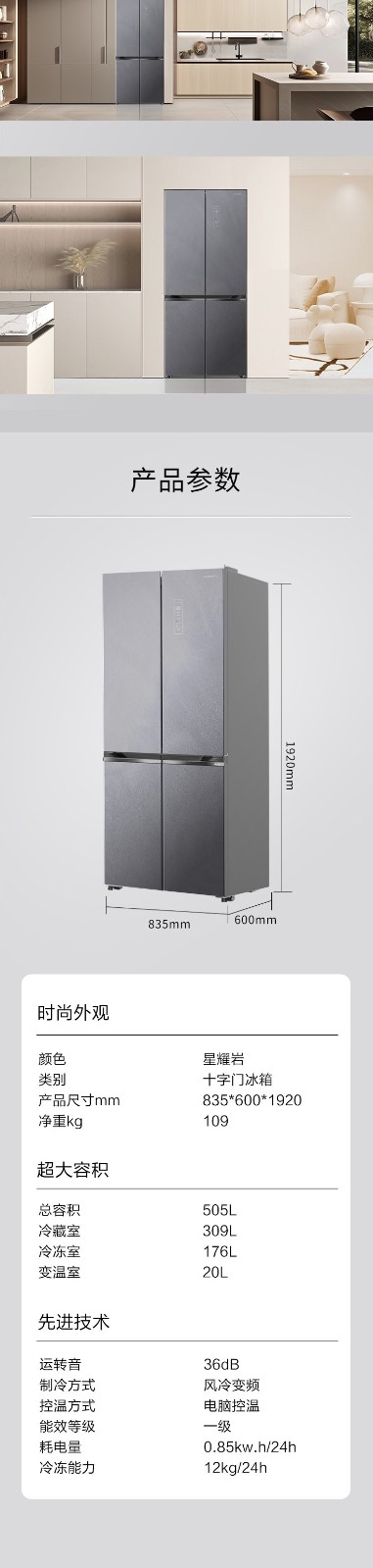 创维冰箱 505L 十字四门 玻璃面板冰箱 BCD-505WXQGPS星耀岩