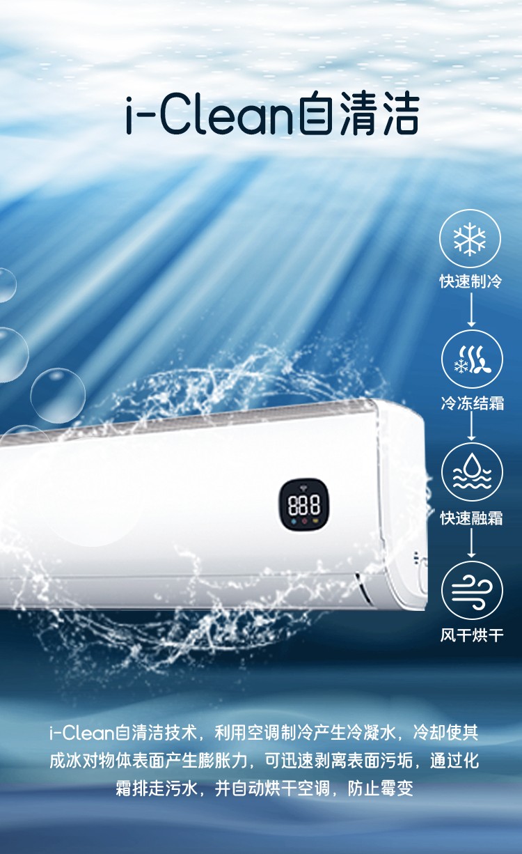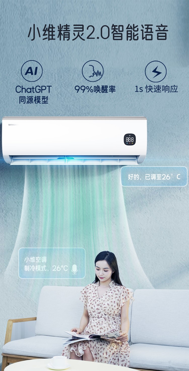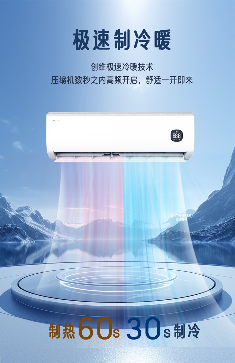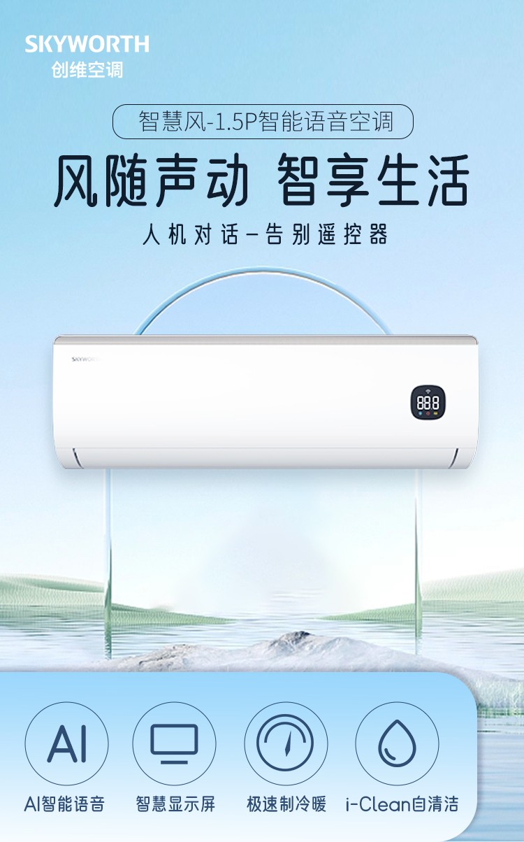 创维1.5匹 智慧风 变频冷暖 自清洁 壁挂空调挂机KFR-35GW/V3GK1J-N1