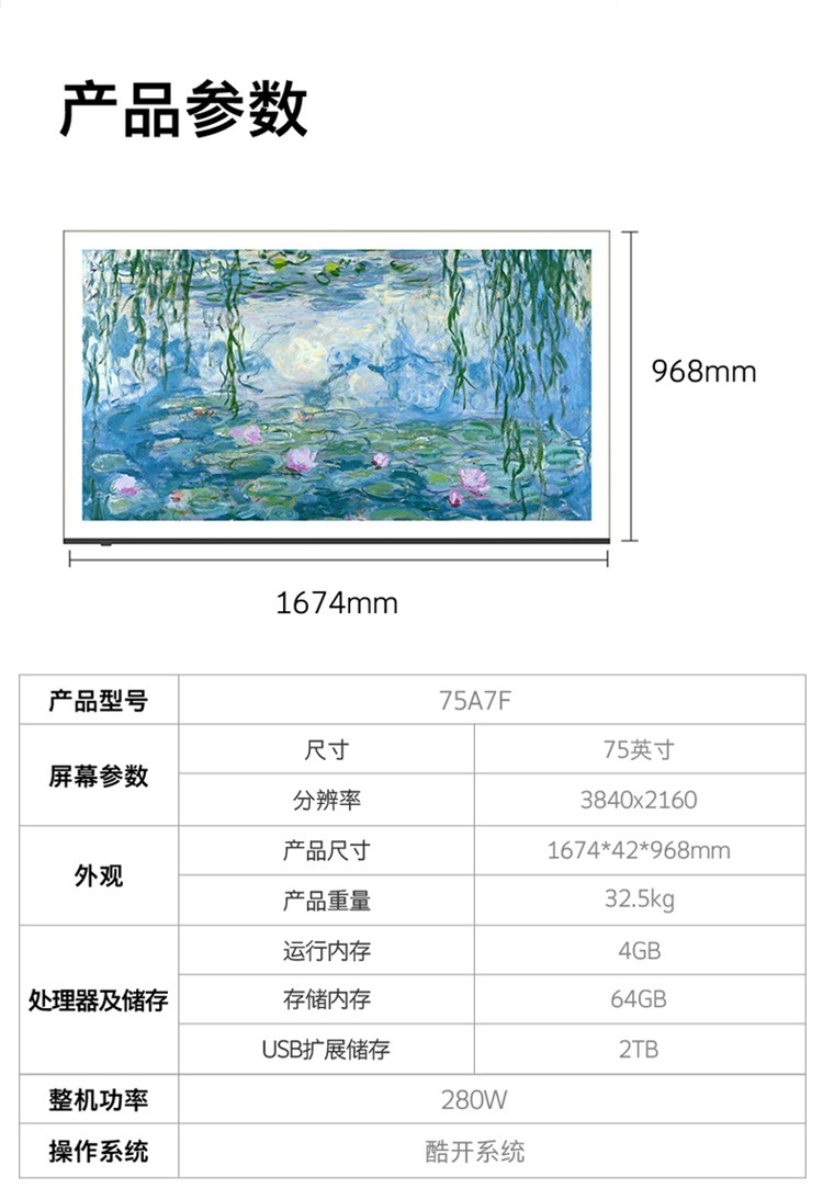 创维壁纸电视 75A7F 超薄壁画艺术mini led 75英寸