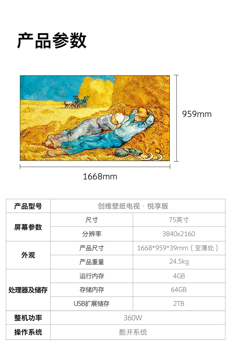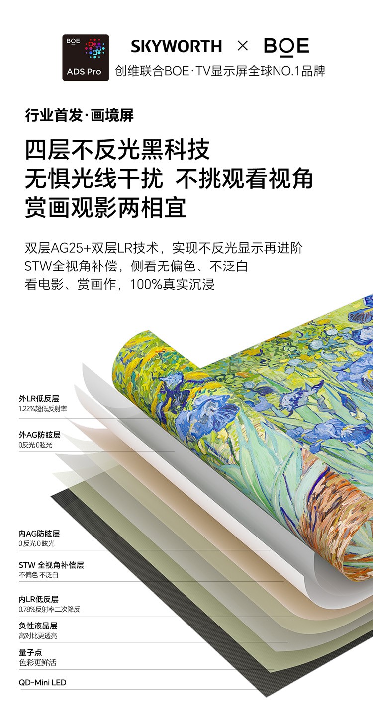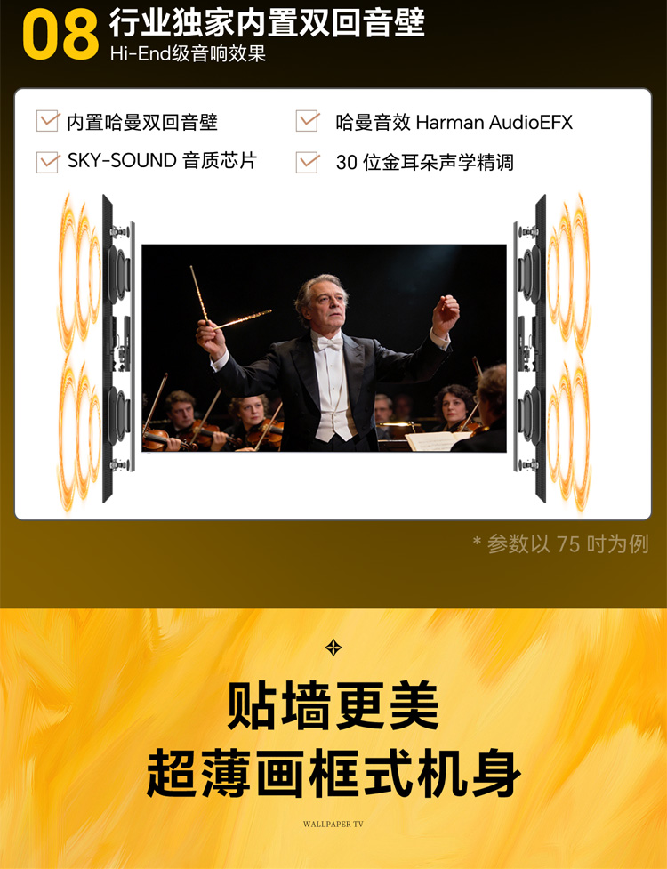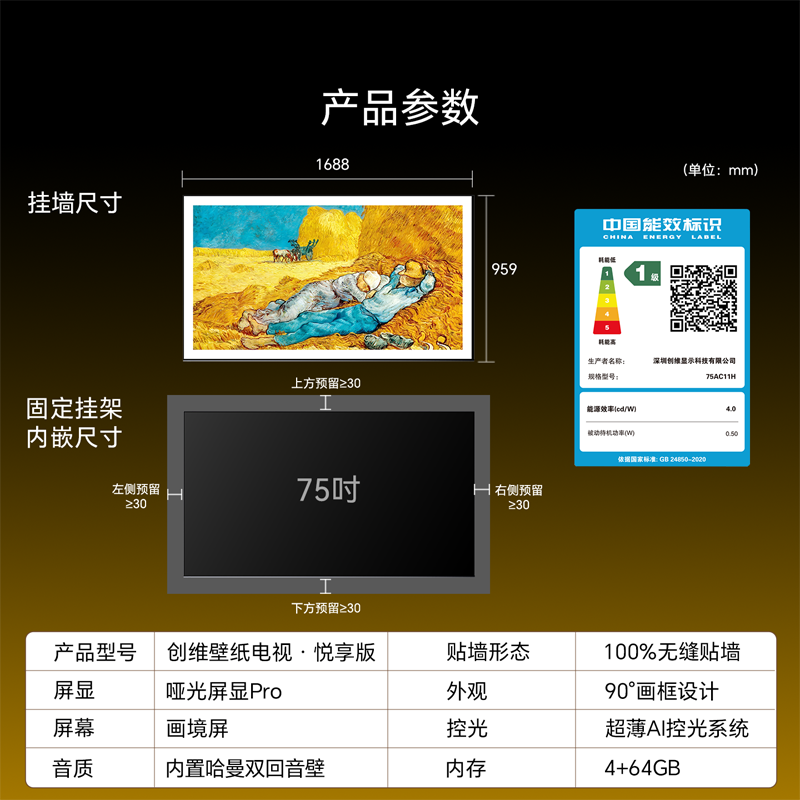 创维电视 75AC11H 壁纸Mini LED 3.9cm超薄无缝贴墙 四重不反光屏 75英寸